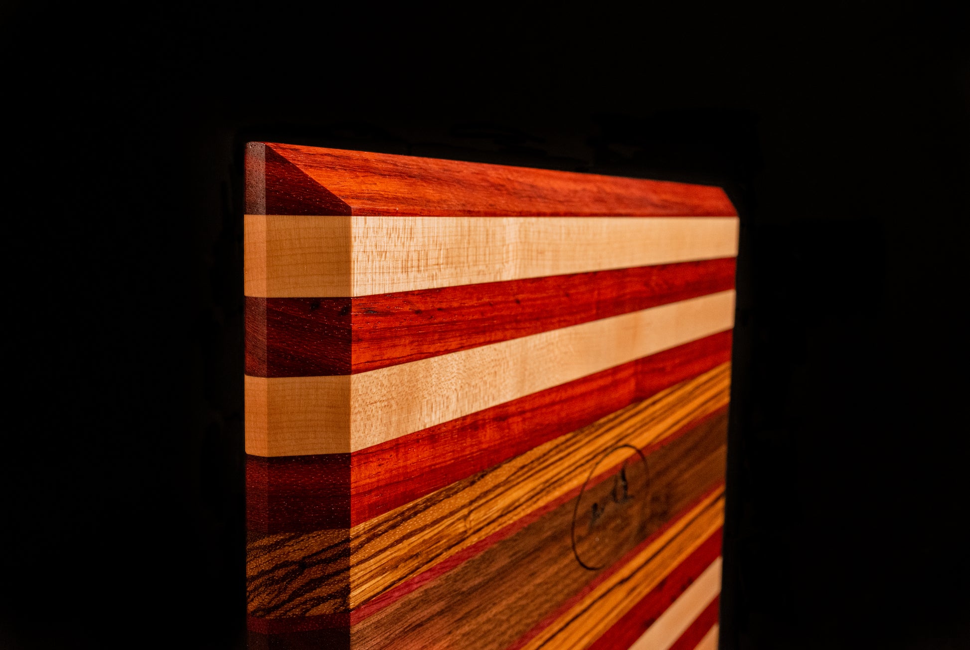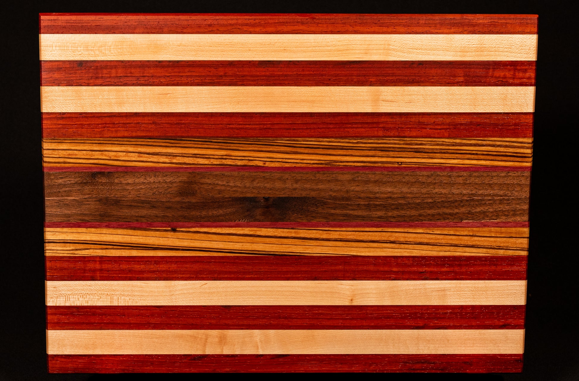 Maple, Walnut, padauk, Zebrawood.